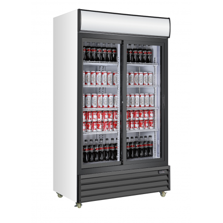 Armario expositor refrigeración de bebidas EXPO 940 TN PC puertas de corredera, refrigeración ventilada, iluminación vertical, estantes regulables, con control digital, cerraduras y ruedas con freno. Ideal para bares, tiendas, supermercados, restaurantes, cafeterías, hoteles, catering, etc.